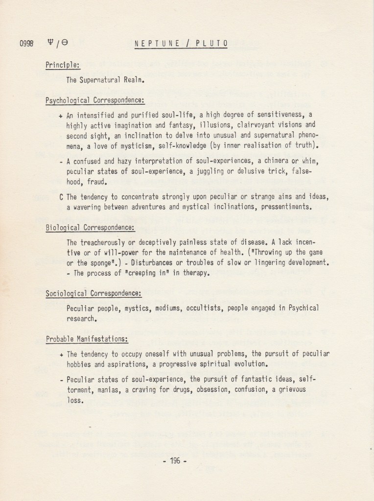 The midpoint, which we label “NE/PL”, is the combined and reconciled influence of both planets. What does the godfather of midpoint theory, Reinhold Ebertin, say about this midpoint?