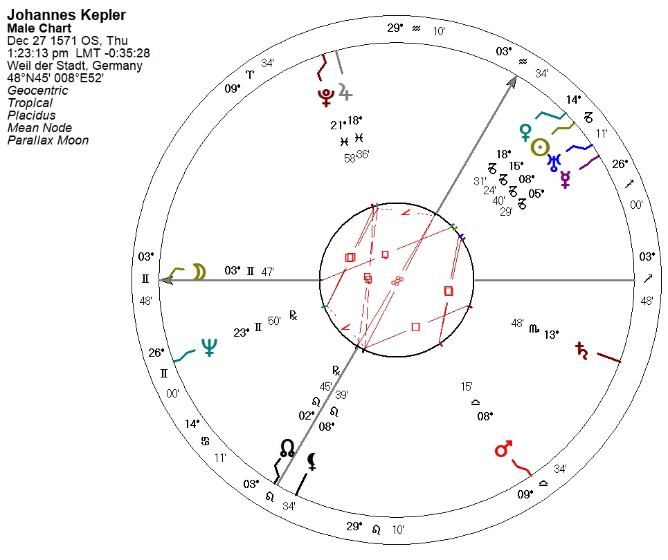 I would say that Venus in the mix alleviates much of this, and brings more joy to the life, but only through the creative process and admiration from others. Kepler was driven by approval from others of his league. Neptune has been called the “higher octave” of Venus by astrologers, and we might find that these two planets are pushing the envelope more on the aesthetic side than if Venus were not in the scenario.