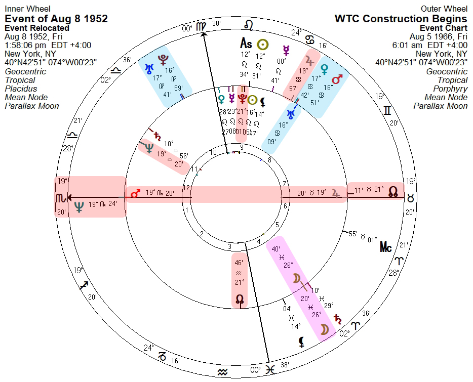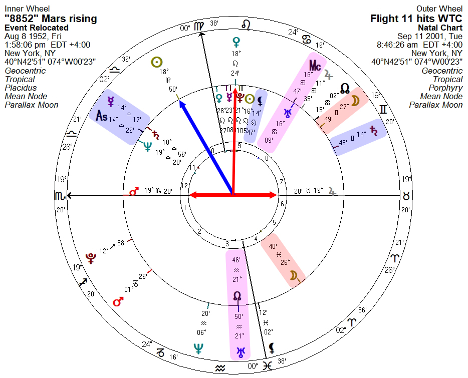 Of course, this could all just be coincidence, as I’m sure every True Believer of the official “It was them dern Moozlums” conspiracy narrative will tell us. I say that this many partile alignments are statistically unlikely, though not impossible if random charts are tossed on a bi-wheel.
