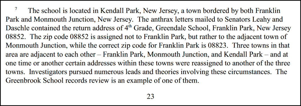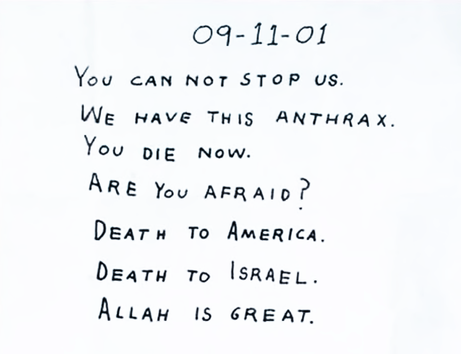 One of the nearly forgotten chapters of the September 11 attacks is the anthrax letters. The US Department of Justice’s official summary is worth a read. “In the fall of 2001, the anthrax letter attacks killed five people and sickened 17 others.”