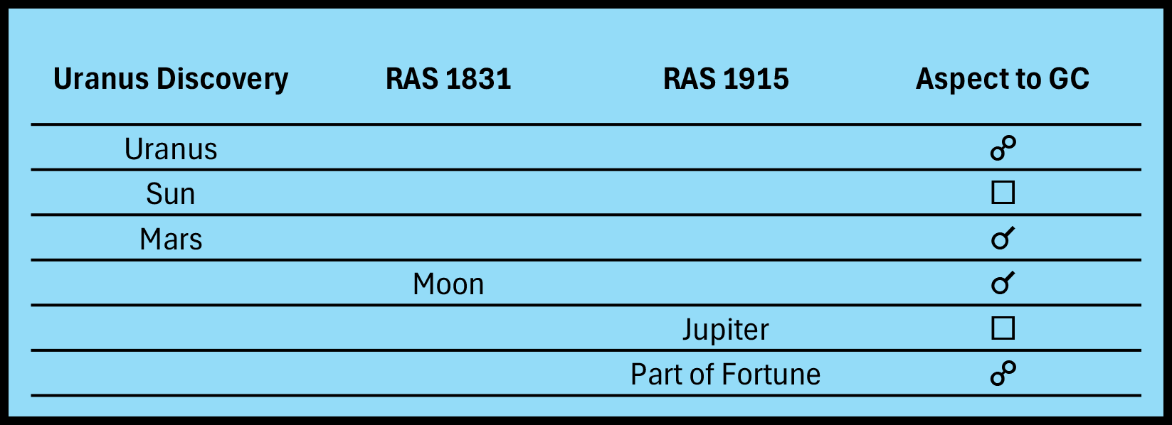In Part One, we saw how the RAS Royal Charter was astrologically linked to both the discovery of Uranus and the first business meeting of the pre-royally honored club.